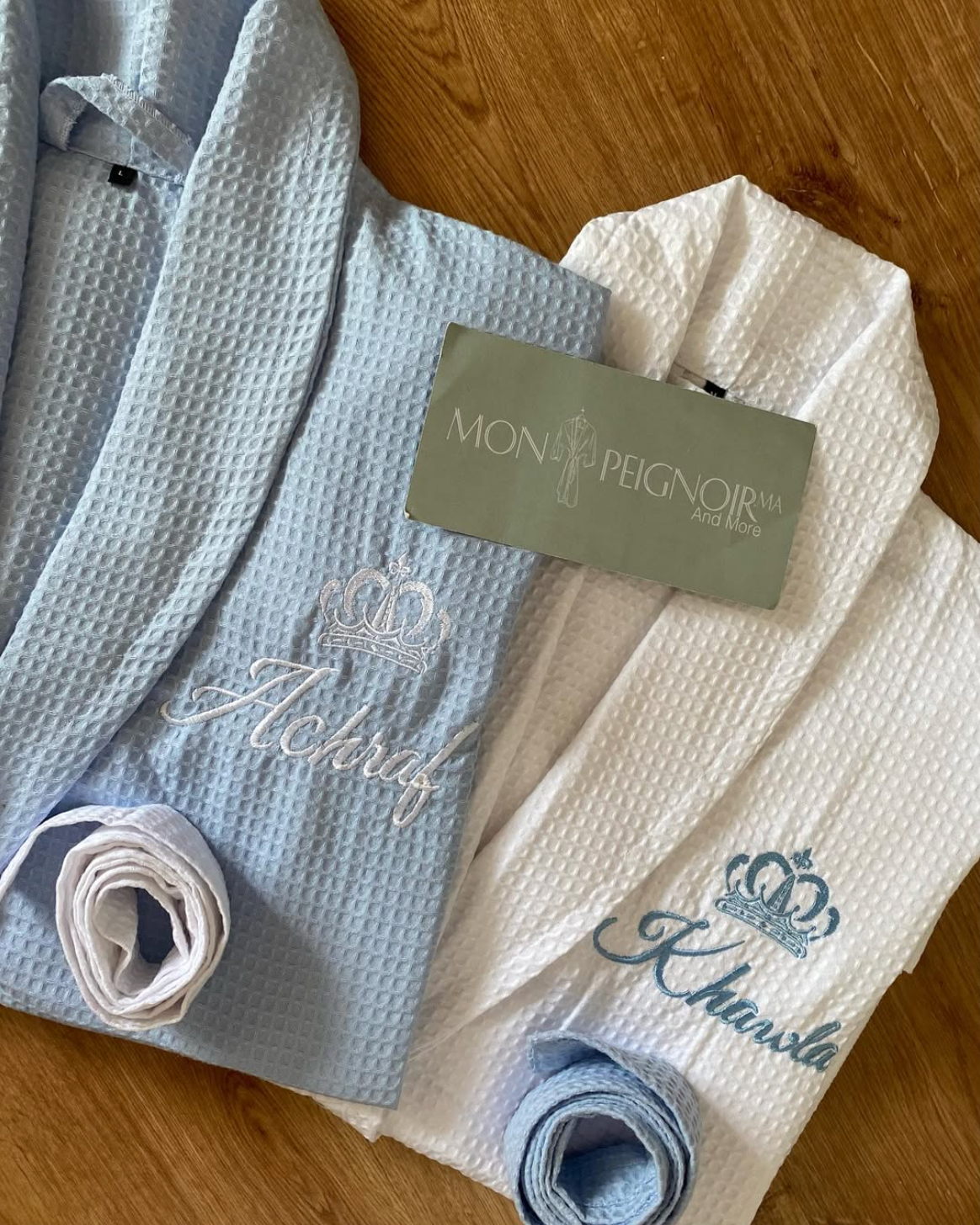 Un coffret spécial pour deux, parfait pour les couples qui veulent allier confort et élégance, avec broderie personnalisée.